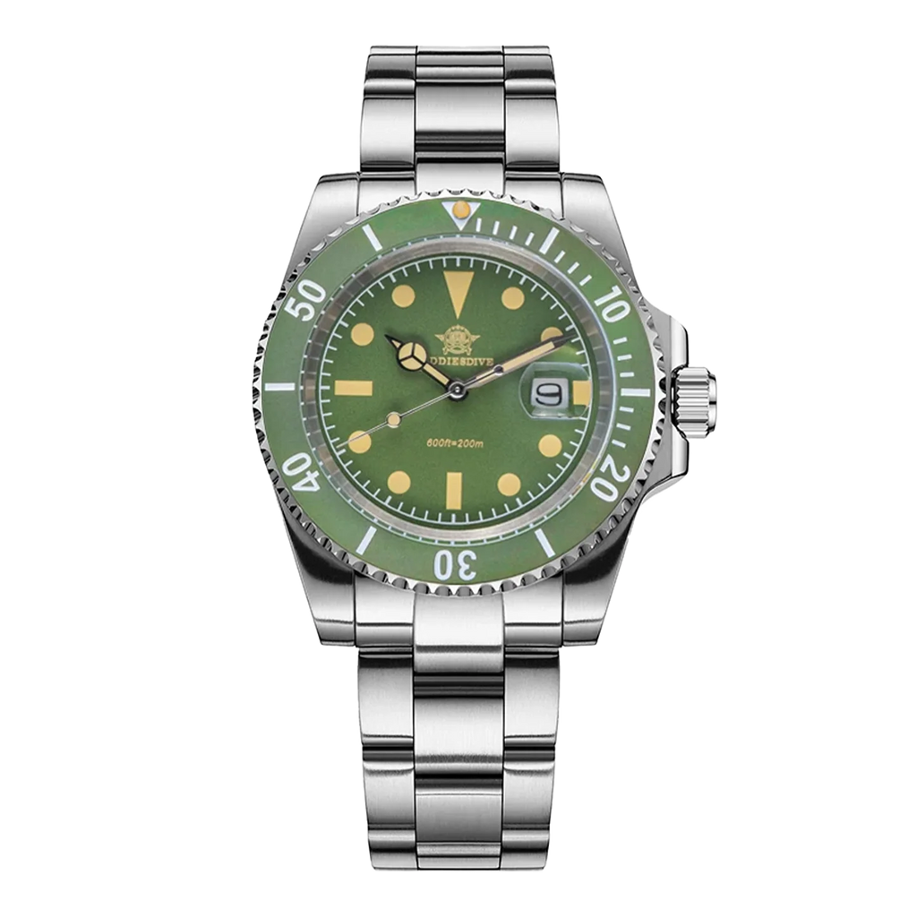 Clássico de mergulho com construção premium: caixa 316L escovada/polida, vidro mineral bolha convexo com revestimento antirreflexo azul (AG), luneta cerâmica fosca de 120 cliques e o confiável movimento japonês Miyota 2115. Lume C3 (brilho verde) para excelente leitura no escuro.
