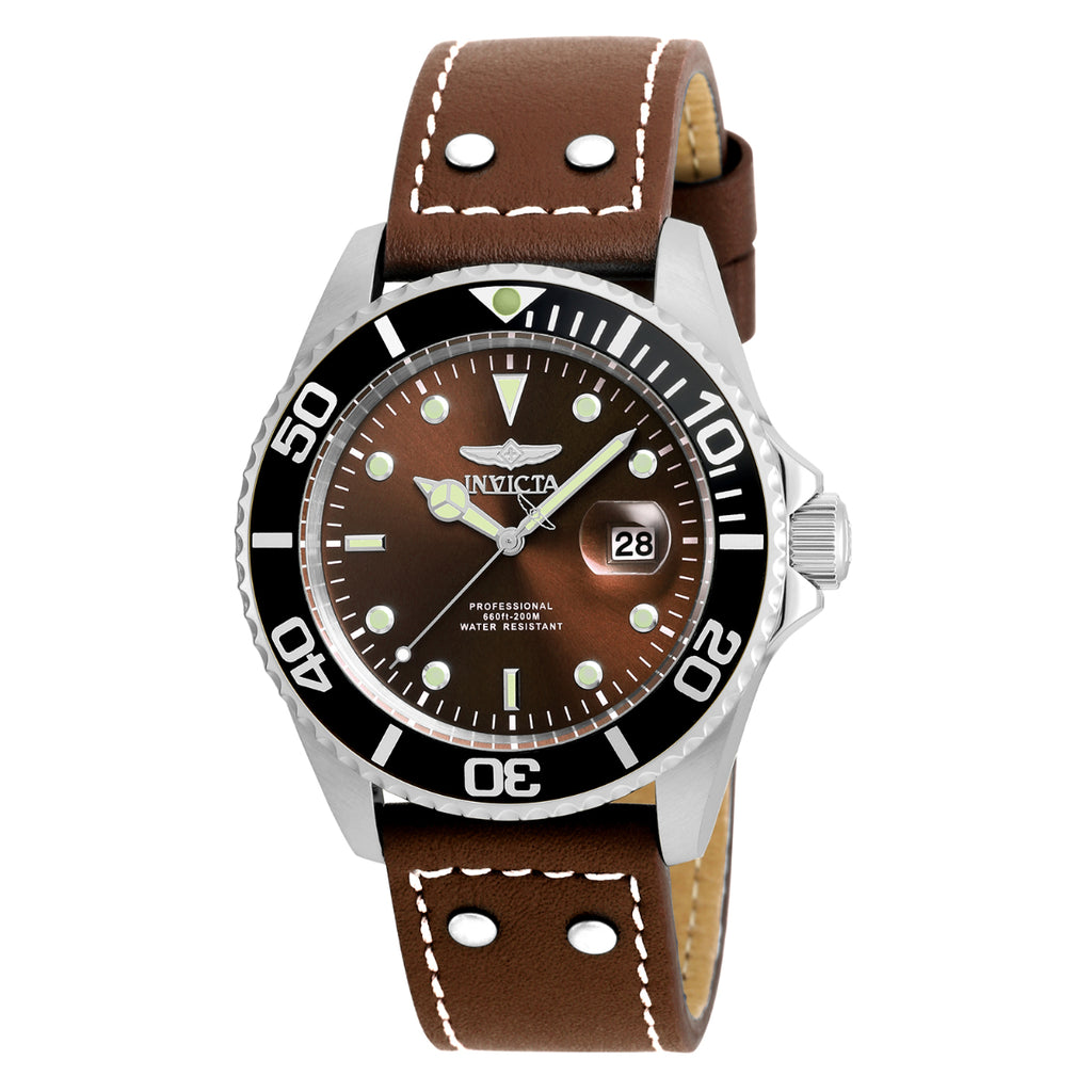 Um modelo distinto da coleção Pro Diver, com caixa em aço inox de 43 mm, mostrador marrom metálico e pulseira em couro marrom claro. Protegido pelo cristal Flame Fusion, traz o movimento quartzo japonês TMI PC32A, calendário de data, bisel unidirecional, coroa rosqueada e resistência à água de 200 m.
