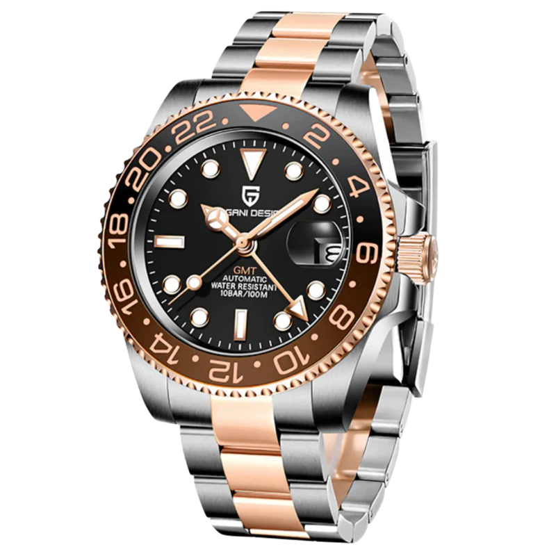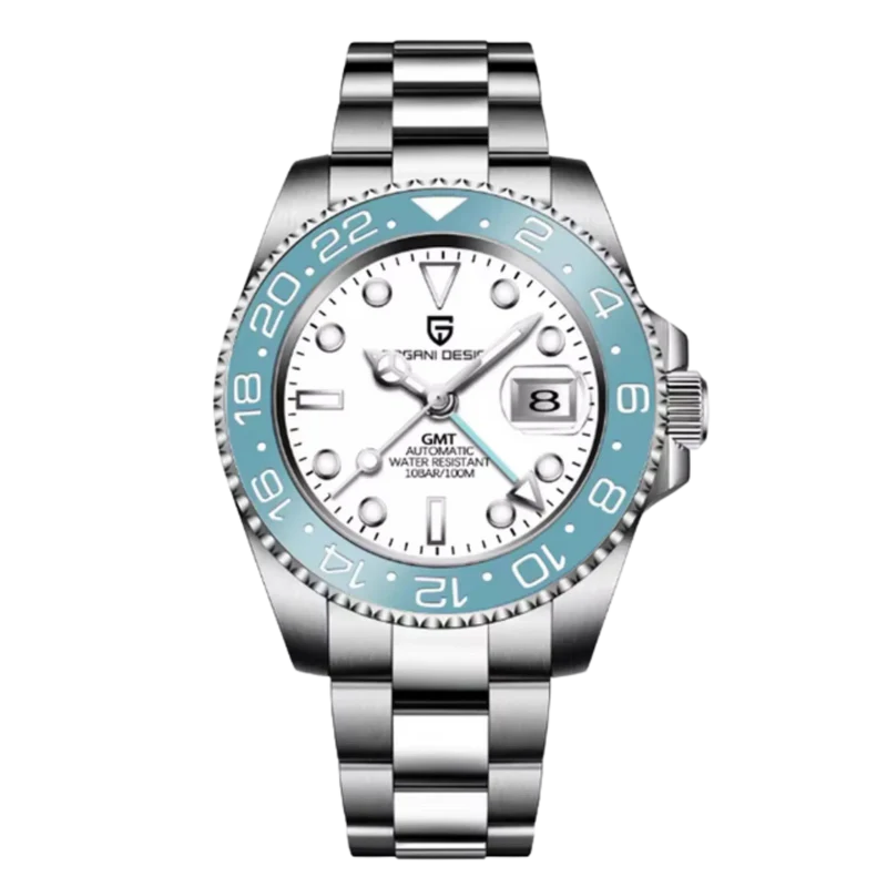 PAGANI DESIGN PD-1662 – GMT – Safira – Bisel Cerâmico – Aço 316L – 100 m